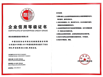 11月30日,綠友集團(tuán)被中國(guó)消防協(xié)會(huì)評(píng)定為AAA信用等級(jí)企業(yè)。