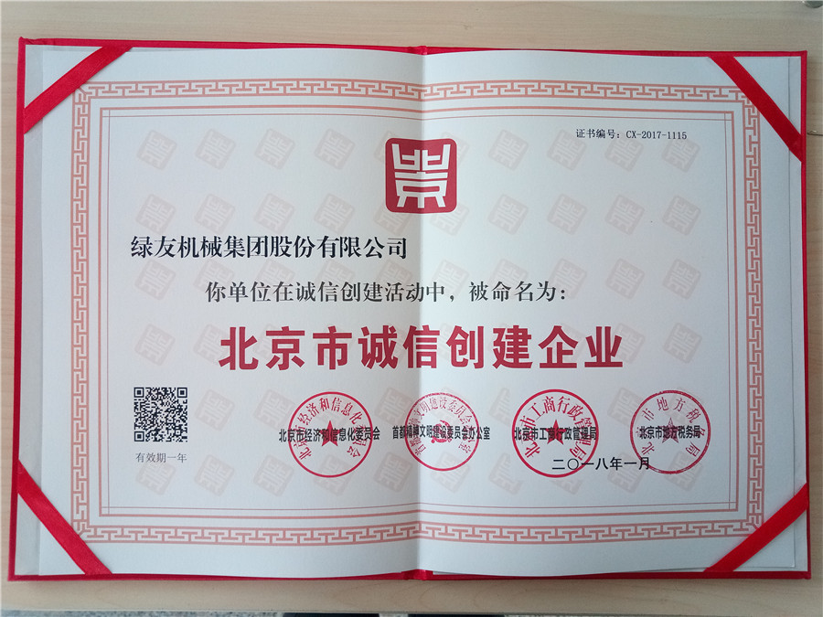 1月,綠友集團(tuán)通過(guò)復(fù)審,獲得“北京市誠(chéng)信創(chuàng)建企業(yè)”證書(shū)。