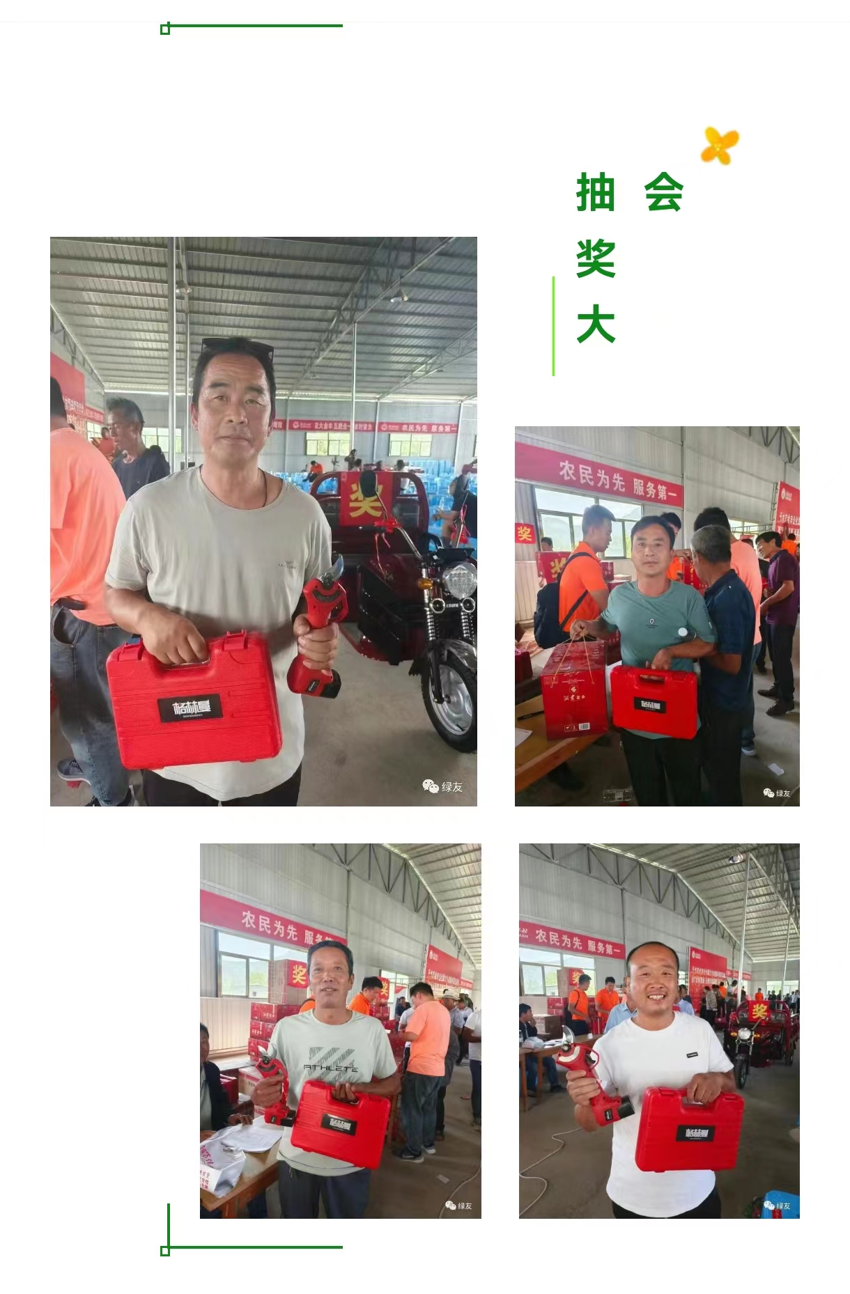 西安綠友園林機械有限公司寶雞分公司攜手某公社分別于8月24日和9月3日舉辦助力鄉(xiāng)村振興項目千人抽獎大會。每場次參會人員均達千余人,綠友公司的格林曼電動修枝剪作為獎品,廣受農(nóng)戶好評。