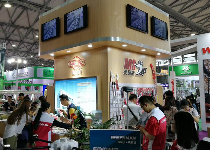 設(shè)備展示區(qū)更是吸引了眾多專業(yè)觀眾的眼光,綠友集團展示了自主研發(fā)、生產(chǎn)以及代理的剪草機、打藥機、灌溉系統(tǒng)、冷霧系統(tǒng)、電動車輛、粉碎機、無人機、園藝工具、植保用品等十多種產(chǎn)品。期間,綠友集團展位上一直人潮涌動,自產(chǎn)設(shè)備引來諸多關(guān)注。有問粉碎機的,有了解大型零轉(zhuǎn)彎剪草機的,有被冷霧系統(tǒng)所吸引的,有圍觀無人機的,更有很多觀眾現(xiàn)場購買愛麗斯園藝工具。綠友工作人員不知疲倦地解答著各種各樣的問題,也收獲了大量訂單。
