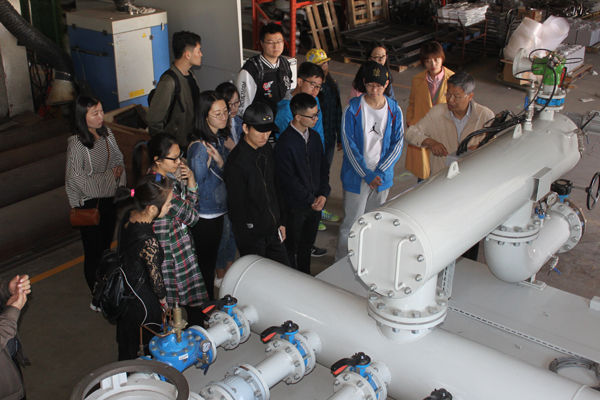 隨后,李總與師生們一起,觀看了草坪綠地灌溉噴灑、造霧系統(tǒng)設(shè)備的現(xiàn)場演示,參觀了產(chǎn)品展廳,了解了泵站的原理性能和生產(chǎn)工序。綠友集團派專人為大家作詳細(xì)地講解和介紹。