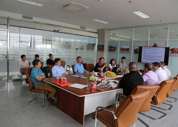 5月8-9日的綠友園,碧空如洗,清風(fēng)獵獵。綠友集團(tuán)迎來(lái)了美國(guó)木霸克公司首席執(zhí)行官戴夫?赫爾、高級(jí)副總裁約翰?福特、工業(yè)設(shè)備國(guó)際部經(jīng)理柯?tīng)柼?麥克穆倫、工業(yè)設(shè)備銷售總監(jiān)邁克爾?斯坦頓一行四人的到訪。