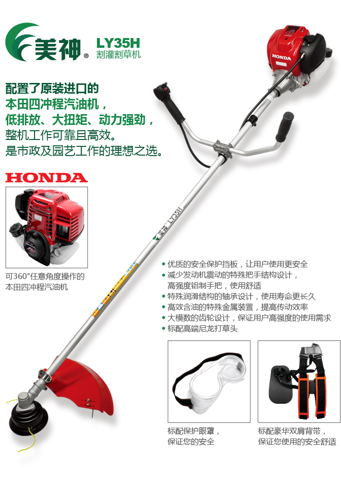 美神四沖程割灌割草機(jī)搭載了本田四沖程GX35強(qiáng)勁動(dòng)力