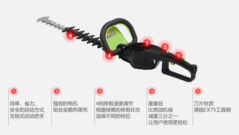3. 4檔調(diào)速設(shè)計(jì),根據(jù)植物的生長狀態(tài)選用合適的修剪速度。