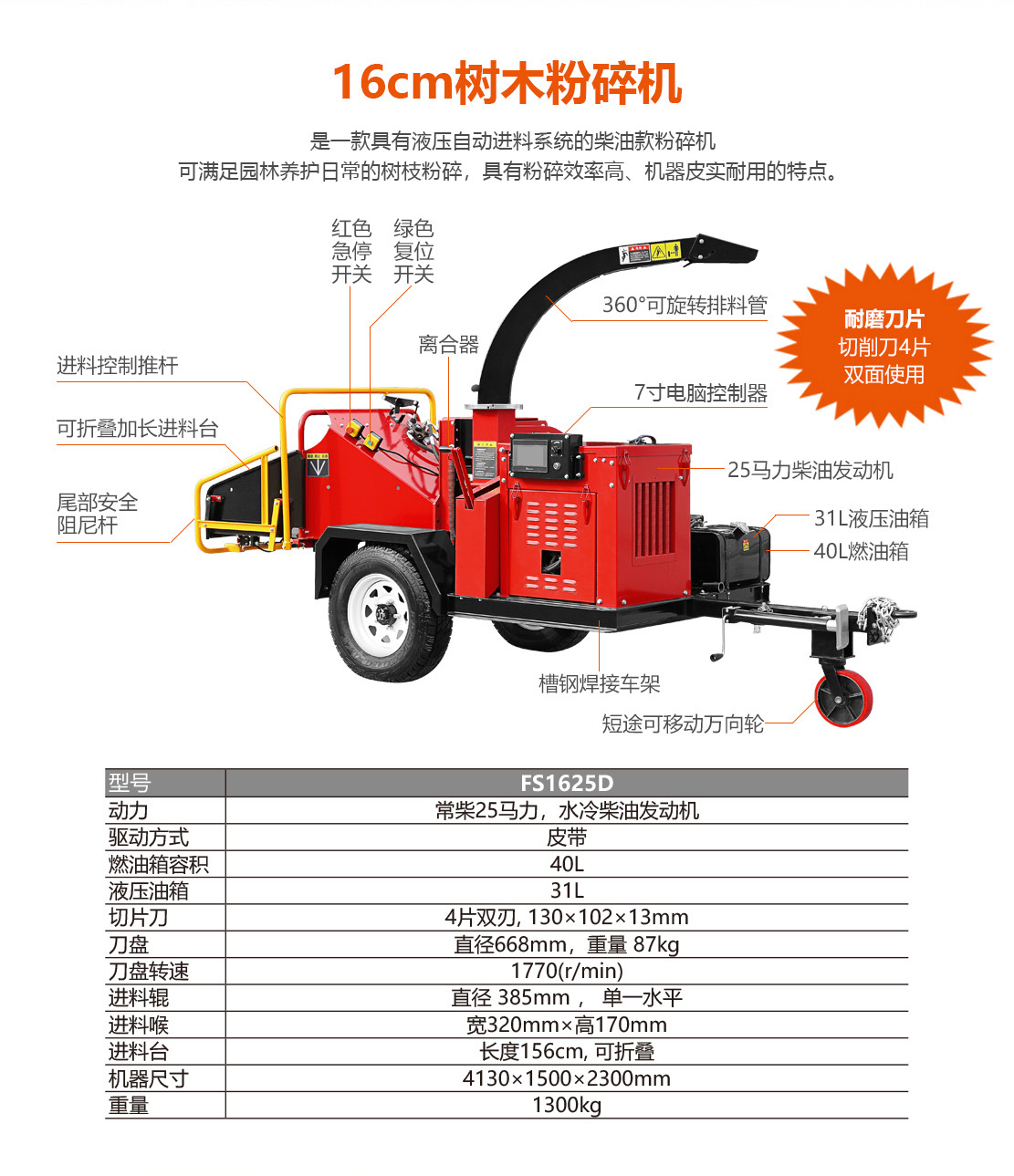 FS1625D 16公分 樹(shù)木粉碎機(jī)