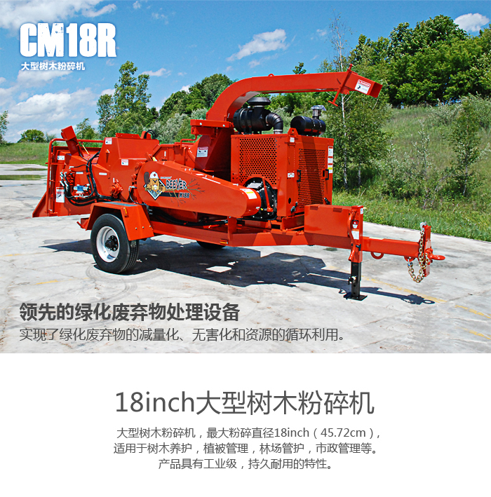 大型樹(shù)木粉碎機(jī),最大粉碎直徑18inch(45.72cm),適用于樹(shù)木養(yǎng)護(hù),植被管理,林場(chǎng)管護(hù),市政管理等。產(chǎn)品具有工業(yè)級(jí),持久耐用的特性。