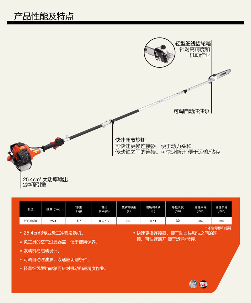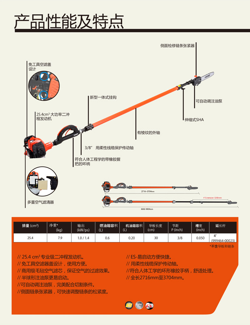 高枝油鋸廣泛應用于森林采伐、造材、以及鐵路枕木鋸截等作業(yè)。愛可的高枝鋸易啟動,動力強勁而穩(wěn)定,讓您在修剪濃密的高枝時輕松自如。